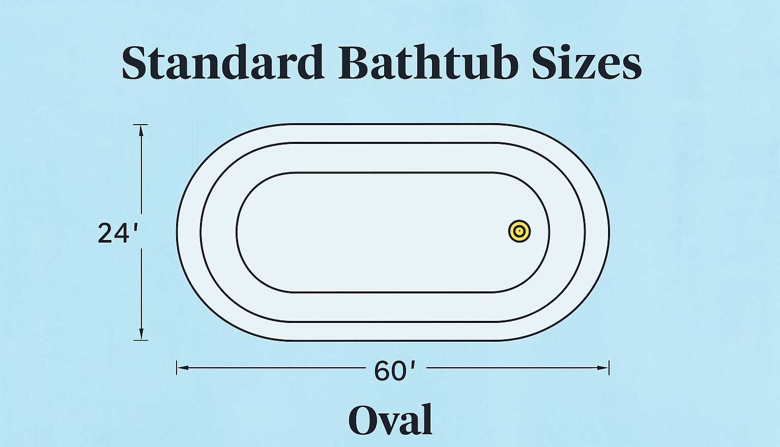 The most common bathtub size is 60 inches long, 30 inches wide, and 14–16 inches high. This size usually refers to an alcove tub, the type most often built into