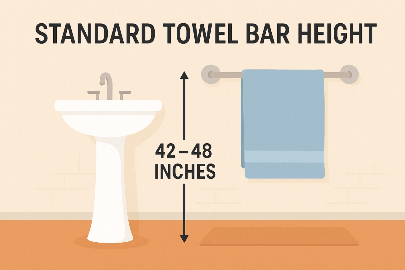 Installing a towel bar at the right height makes your bathroom more functional and keeps towels off the floor. The standard height is 42 to 48 inches from the floor
