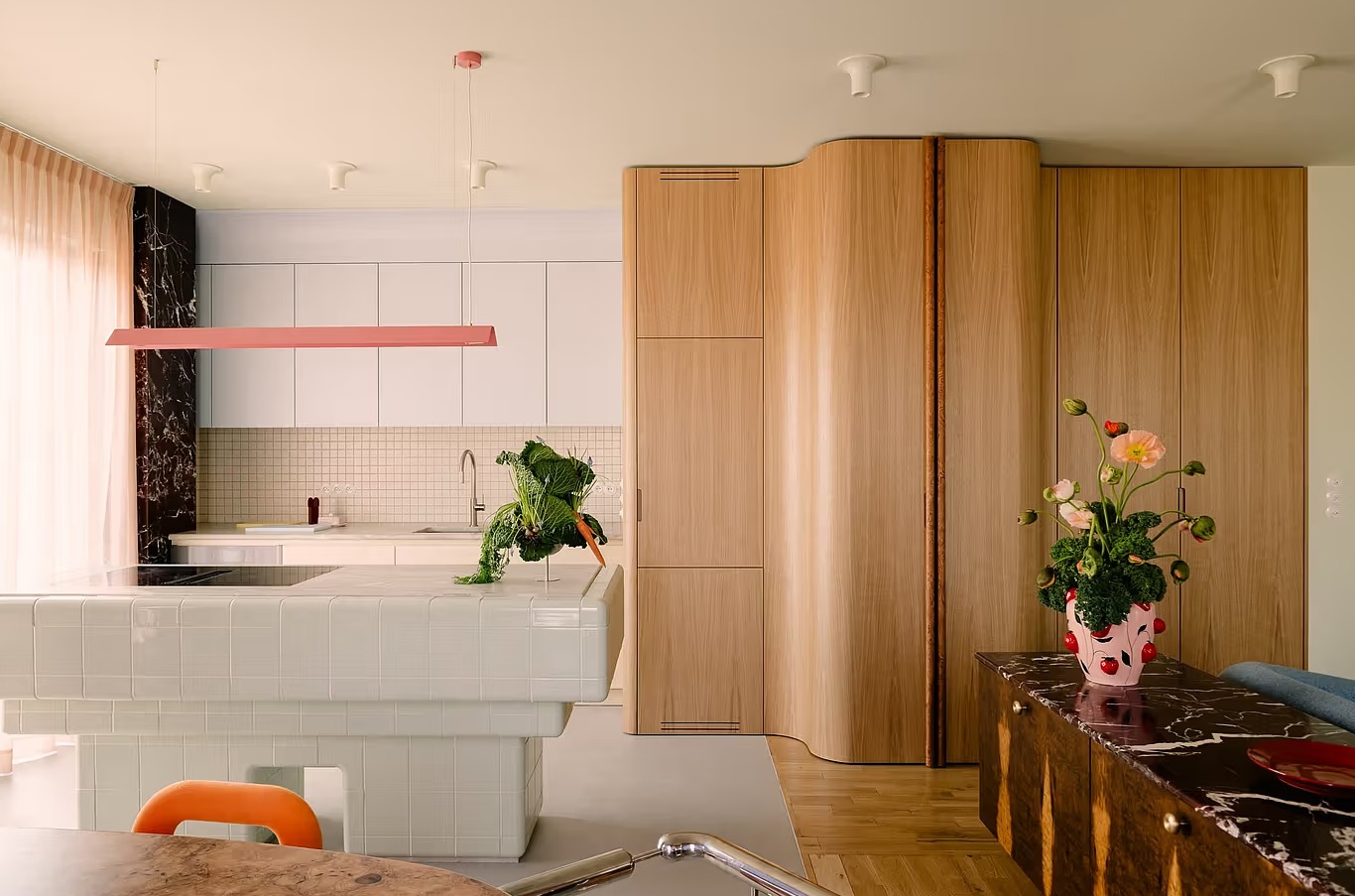 Architect Karina Passarelli of Studio KP Arquitetura reimagined this 350-sqm São Paulo duplex as a spacious yet intimate retreat for a young family. With its double-height ceilings, bold architectural gestures,